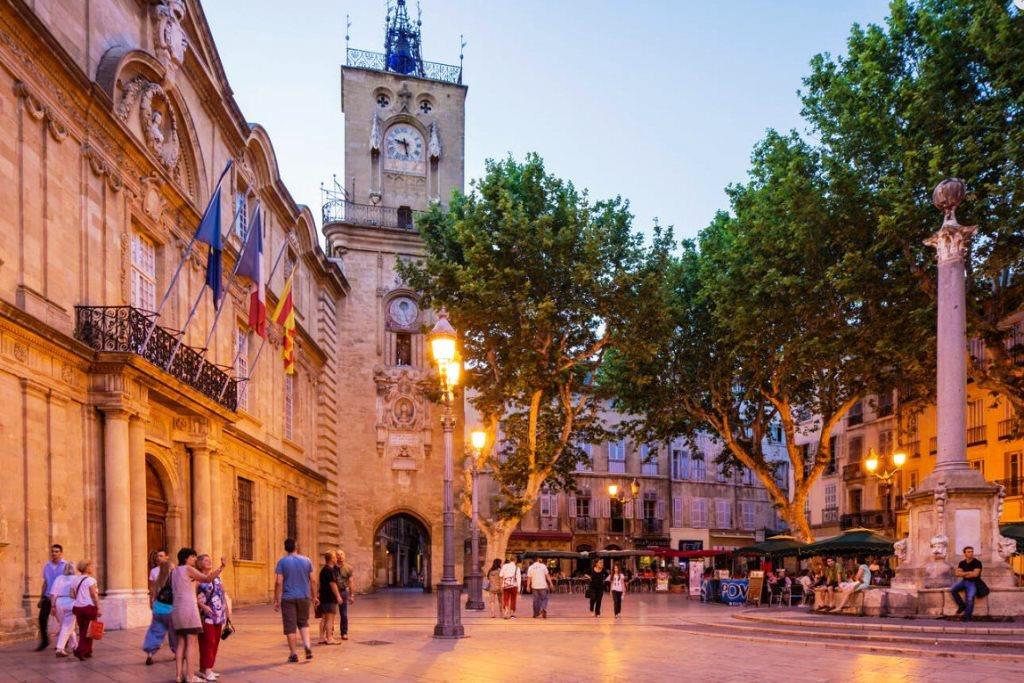 Evening on Place de l’Hotel de Ville in the heart of Aix-en-Provence. Photo, Alamy