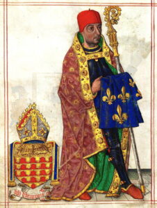 The Bishop of Beauvais carrying the Coat of Arms at the King’s Coronation in 1509. Photo, Alamy