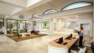 Interior of the former barn at the Maladrerie Leper Hospital.