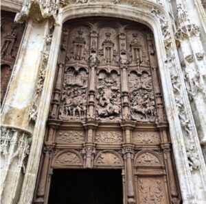 The façades of the cathedral are the epitome of the richness of the late Gothic period.  The carved timber doors of both the north and south portals are masterpieces of Gothic (the north) and Renaissance (south) workmanship.