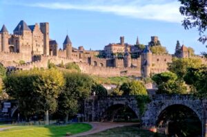 The spectacular fortress of Carcassonne is regarded as the best-preserved medieval fortress in Europe, and according to many experts, the world, and has been the inspiration for countless castles that have been invented in fairy tales. Carcassonne is located in the Department of the Aude in the Occitanie region of southern France, a 3-hour drive from the Pyrenees and only 150 kms from the Spanish border. To the northwest, it’s about 80 kms from Toulouse. The city boasts splendid ramparts with watchtowers, a portcullis, a drawbridge and elevated defences built on top of a hill. All of this, together with its almost 2,000 years of history, it’s easy to see why this World Heritage site is one of the biggest drawcards in the country.