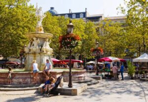 Inside the Bastide is a warren of streets lined with historic buildings. The town spreads outwards from the central square, Place Carnot, with its famous fountain, loved by the great French writer, Balzac. This square is the perfect setting to relax at a terraced café and watch the world go by. Where the ancient moats once were, there are now boulevards lined with houses and shops. One thing you are sure to notice is that the pavement is made from rose coloured marble. This was laid to honour the visit of Louis XIV, the Sun King. The marble was quarried from nearby Caunes, Minervois. Marble from this quarry was also used at Versailles, the Opera Garnier in Paris as well as the White House in Washington.