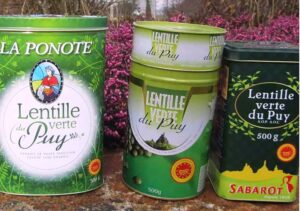 Another regional speciality is the Le Puy green lentil (lentille verte du Puy). Grown in the thin, volcanic soils surrounding that town, these small, dark lentils have a unique taste and texture. Their high protein and low carbohydrate content make them popular for soups and dishes such as goose, duck and sausage. The lentils are so distinctive that the European Union has granted them a Protected Designation of Origin (PDO).