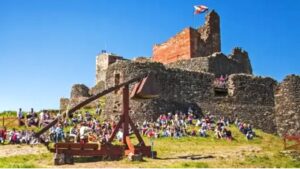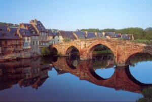 Just 20 kms further along the Route you will come to Espalion in the Lot Valley, a pretty village that overlooks the pastures of the Monts d’Aubrac to the north and the Causse Comtal to the south. This once-fortified town is an essential stop-off point along the Route, and the ruins of Calmont d’Olt castle dominate a hill overlooking the town. Jousting and archer challenges are held regularly in the castle grounds.