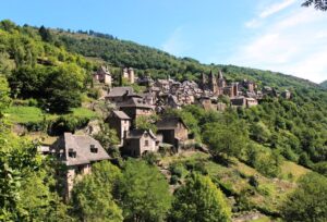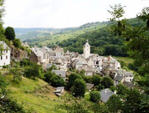Having left Le-Puy-en-Velay, your first stop on your walk is a great introduction to the Via Podiensis Route. It’s 126 kms to the little village of Saint-Chely-d’Aubrac, halfway between the Aubrac plateau and the Lot valley, set in a large and beautiful green, steep-sided valley. Going down a wild, wooded valley, the walker discovers the village in a large clearing, and you enter the town by the old bridge with its pilgrim’s cross, just like the pilgrims of the past. The village is recognised by UNESCO as part of the Routes of Santiago de Compostela in France, and the so-called Bridge of Pilgrims is specifically named as part of this designation.