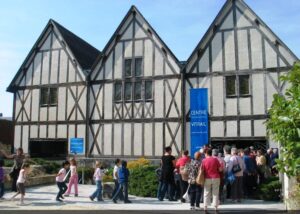 A tour group waiting to enter the Stained Glass Centre in Chartres.