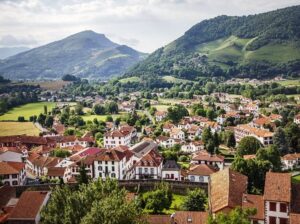 View of the picturesque village of Ostabat-Asme.