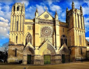 Heading south, Poitiers is next.  A dynamic city combining rich medieval history with a lively, rather youthful, atmosphere.  The pedestrianised centre features delightful, walkable streets, picturesque alleys, half-timbered houses, countless cafes and markets.  There is the Church of Notre-Dame-la-Grande, a major Romanesque masterpiece, with an intricately carved façade and a stunning interior.  You won’t miss the gothic style Cathédrale Saint-Pierre, and Baptistère Saint-Jean, considered one of the oldest Christian buildings in Europe, and the Palais de Justice, formerly the palace of the Counts of Poitou and Dukes of Aquitaine.  Take a well-deserved rest or leisurely walk through a large, French-style garden, the Parc de Blossac.