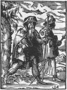 Etching of pilgrims en route to Santiago de Compostela in 1568