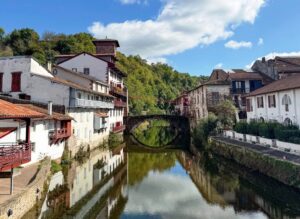 From here, it’s only 17kms to Saint-Jean-Pied-de-Port, located on the river Neve, and at the foot of an important pass through the Pyrenees between France and Spain.  The old capital of the traditional Basque province of Lower Navarre, it is a beautiful, unspoiled village surrounded by a brilliant green landscape, which beckons not only keen hikers, but those seeking relaxation, strolling through the cobbled streets, and stunning walks through the nearby hills, many of which are covered in terraced vines.