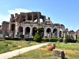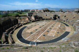 Today, the main thing to see is the enormous amphitheatre, the second biggest in the Roman Empire, which was the site of the first and most famous gladiator school.  Numerous combatants were trained here before spilling their blood and sweat over the sand not only of this amphitheatre, but also those at Pompeii and Rome’s Colosseum.  Also, don’t miss the small museum on-site, full of artefacts and interesting objects from the amphitheatre.