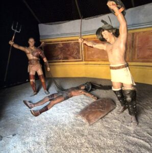 Models of gladiators in the museum at the amphitheatre, Capua.