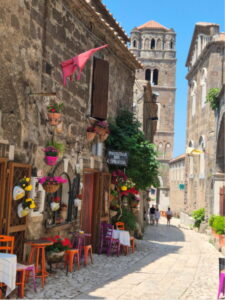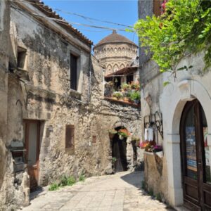 Casertavecchia has a lively and well preserved atmosphere, with cobblestone streets, narrow alleys, and bright flower boxes everywhere.  The village is known for the medieval Italian architecture of its stone and brick buildings and facing onto the main square, Piazza Vescovado, are the 12th century Cathedral of San Michele and the belltower.