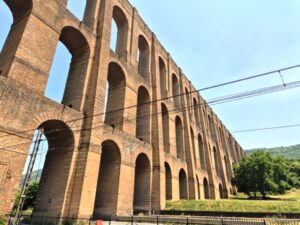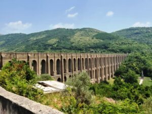 Half an hour’s drive from Casertavecchia or 20 mins. from Caserta, is the enormous Aqueduct of Vanvitelli, known in Italian as the Acquedotto Carolino.  This 38 km long aqueduct supplied water to the Royal Palace and its fountains, and the San Leucio complex from springs running to the foot of the Taburno massif, marked by 67 control towers along its underground path to the Royal Palace gardens.