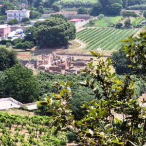The archaeological site of ancient Cumae overlooks a fertile plain below.