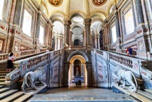Construction of the palace began in 1752 for Charles VII of Naples (later Charles lll of Spain).  However, Charles never slept a night at the palace, as he abdicated in 1759 to become King of Spain.  It was partially completed by Charles’ 3rd son and successor, Ferdinand lV of Naples.