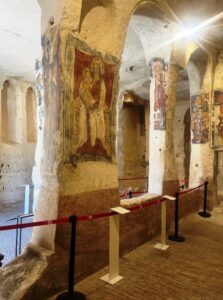 It was the first female monastic settlement of the Benedictine order dating back to the 8th century. It’s a church of considerable size whose exterior front is along the rocky wall with a series of entrances giving entry to many internal cavities.