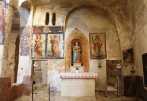 On the next level down is the church of San Pietro Caveoso. This church also known as the Chiesa di San Pietro e Paolo, was originally built in 1218, but has undergone numerous refurbishments since then. Of the various so-called rock churches, Santa Lucia alle Malve is considered to be the most important in the history of Matera.
