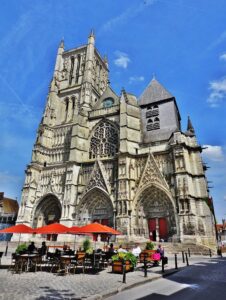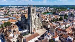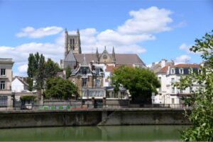 A stream of the Marne divides the old city into the North Quarter, or Cathedral/Episcopal Quarter on the right bank, and the South Quarter or Market Quarter on the left bank. In the North Quarter there’s the 12th century Cathedral of Saint Etienne, which can be seen from kilometres away, the episcopal palace and its gardens, the old chapter house, part of the defensive walls, some keeps and towers and the archaeological remains of the sanctuary of La Bauve, dating from the Gaulish period of 4th, 3rd and 1st centuries BCE, the era of the early Roman Empire and the early Christian Era and the subsequent centuries, along with the remains of the Abbaye Saint-Faron, which was demolished during the Revolution.