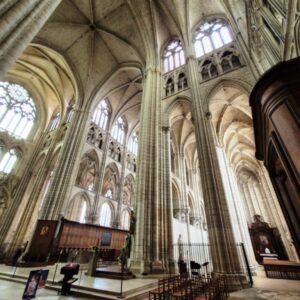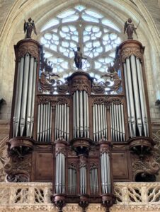 Statuary and carvings throughout the church were mutilated by some of the Huguenots in 1562, and from that date no further work was done on the building. One tower remains somewhat stunted. A tall spire over the transept fell into ruin and was removed in 1610. The cathedral has a very famous organ, built in the 17th century.