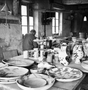 Picasso at work in the Madoura ceramics workshop in Vallauris