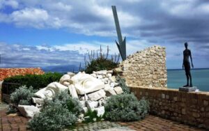 To see Picasso’s sculptures and ceramics, you need to head to the town of Vallauris.  This lies 2.50kms inland from Golfe Juan and a little over 7 kms from Antibes.  He lived in Vallauris from 1948 to 1955.  At the time, he was living with Francoise Gilot and their two children, Claude and Paloma.  Fascinated by ceramics, he began working with local artisans, and was introduced to the Madoura workshop: shaping, moulding, firing, forming and deforming.  He quickly mastered the technique, creating numerous pieces, including his famous owls and mythological figures, jugs, plates and pots, in all some 4,000 works.  The Madoura workshop is home to a permanent collection of ceramics by Picasso as well as Suzanne Ramié, and holds regular contemporary exhibitions.  Madoura is located on rue Suzanne et George Ramié, Vallauris.