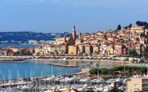 The waterfront of Menton, the last town before the border into Italy.