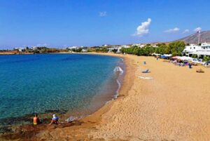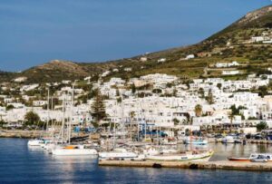 The main port of Parikia is the capital of Paros located on the island’s western side. It’s very typical of other Cycladic islands, as you can see when you explore its narrow, cobbled streets, numerous historic churches, the small shops, waterfront restaurants and the whitewashed houses with blue timberwork. In ancient times, the port of Parikia gave Paros its strength and made it a great naval power.