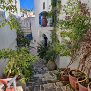 Taking the same bus from Parikia to Naoussa, it’s easy to take a detour to the beautiful village of Lefkes, a Must See on the island. From the bus stop, you walk down a slope through the charming historic town, with narrow, pedestrianised stone laneways, beautiful traditional and neo-classical buildings, delicious tavernas, friendly locals bidding you a cheery hello.
