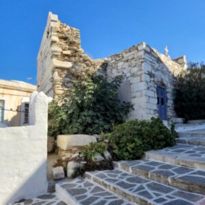Just 2 mins. down the hill from the Church of 100 Doors you will see signposts to the remains of the Frankish castle, built in the 1200s by the Venetian Sanoudo family on the site of an ancient acropolis. Researchers believe that the castle was built from the remains of an assortment of ancient sanctuaries that were scattered in and around the island. Its walls and defensive tower are town landmarks. The western and northern part of the castle wall is believed to have become submerged into the sea after a coastal landslide in the 18th century.