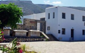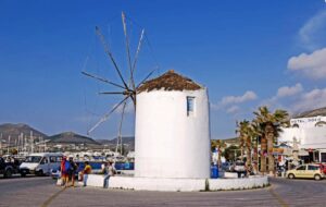 In the centre of Parikia you can see some fine neoclassical mansions that now house various public institutions and services. The main landmarks of Parikia are the preserved windmill right on the port, and the Venetian Castle on the top of the village, which was built by the Venetians in the early 17th century. There is also the small Archaeological Museum of Paros in Parikia, as mentioned, which houses some of the many finds from sites across the island, although the best pieces were taken to the National Archaeological Museum in Athens.