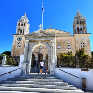 There is a small, pretty main town, and some popular, beautiful beaches such as Psaraliki Beach and Soros Beach, known for its crystal-clear waters. Attracted by its peace and relative quiet, actor Tom Hanks and his wife (who has a Greek mother), bought a stone house standing on about 2 – 3 hectares of land, between the tiny villages of Glypha and Chora. The couple can often be seen going to local church services and shopping in the local food market, as it seems they both love to cook.