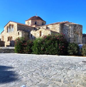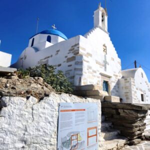 Another beautiful church, which you will see if you take a walk around the waterfront, is the Church of St Constantine. Built partly on the remains of the Temple of Athena, today it is typical of the Cyclades, with its whitewashed ancient walls, blue dome, surrounded by bright pink bougainvillea, perched on perhaps the highest point overlooking the town. You are sure to come across painters and picnickers enjoying the tranquillity and stunning views.
